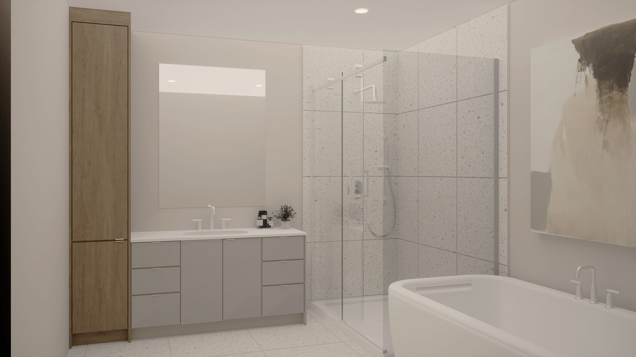 - Plancher et douche en céramique 24″ x 24″